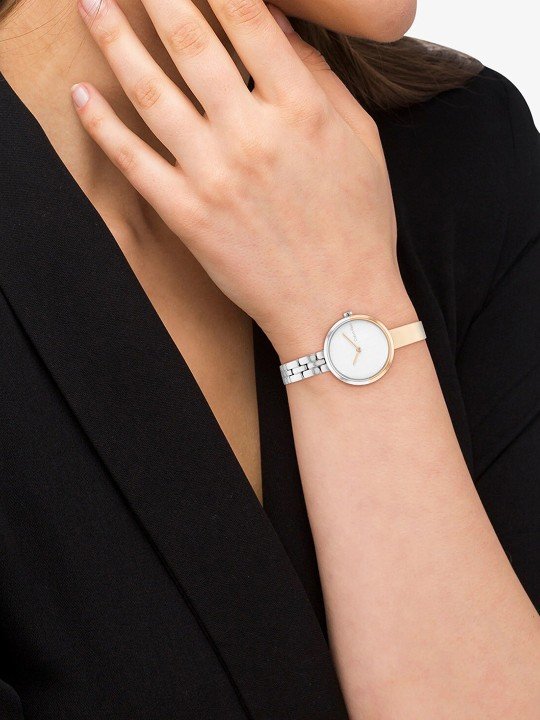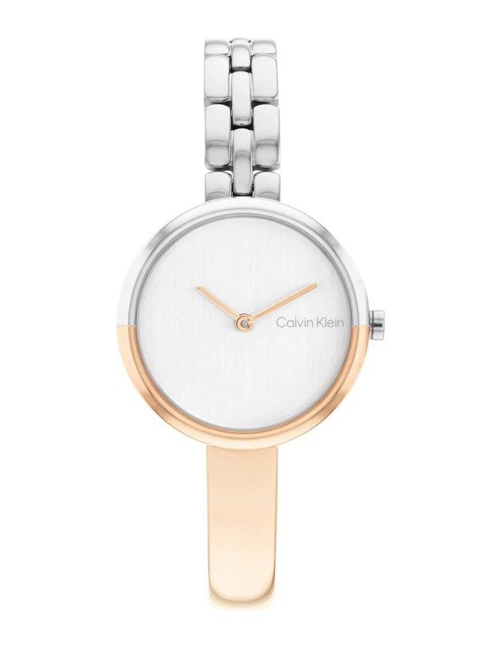 The Calvin Klein Women’s Round Dual-Tone Watch is a sophisticated blend of modern design and timeless elegance. Meticulously crafted for women who value style and functionality, this watch is more than just a timepiece—it’s an expression of refined taste and understated beauty. Whether you’re dressing up for a special occasion or adding a touch of elegance to your everyday look, this watch perfectly complements your outfit.